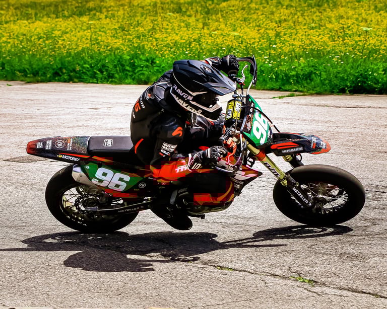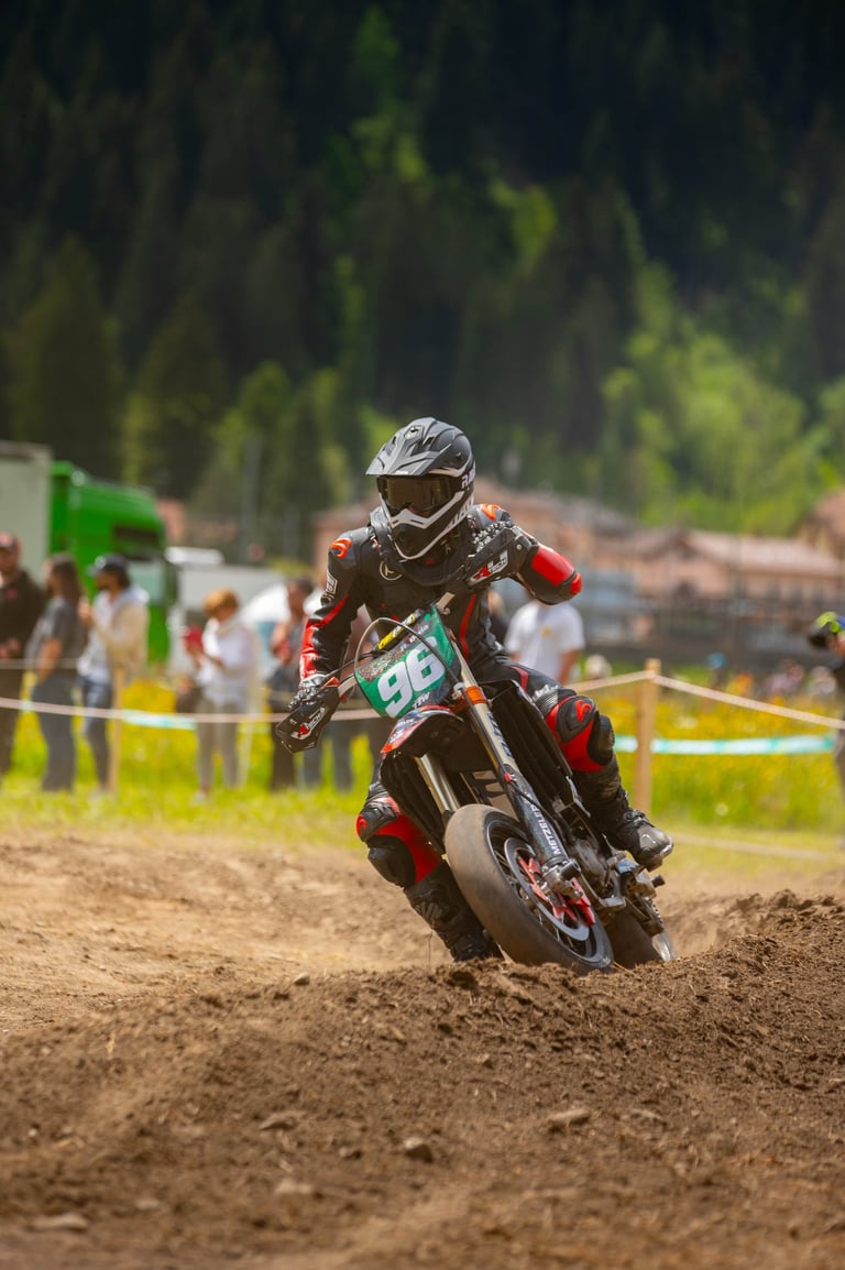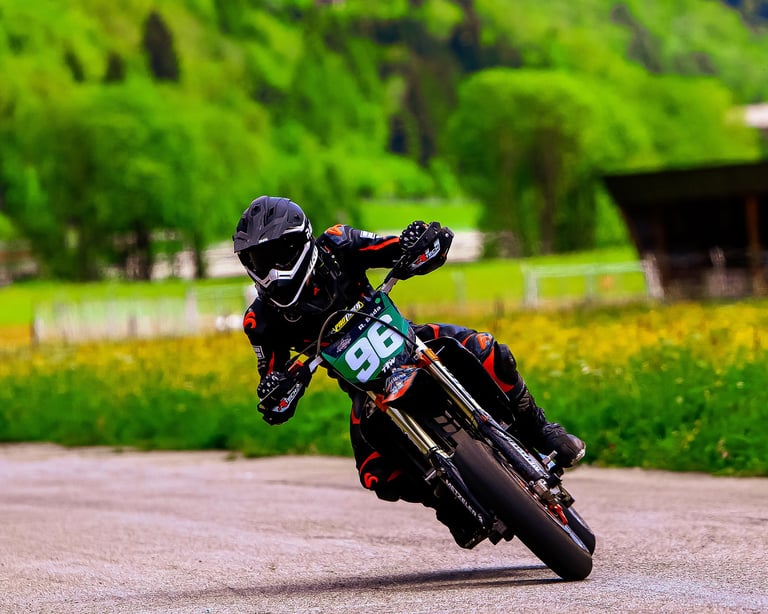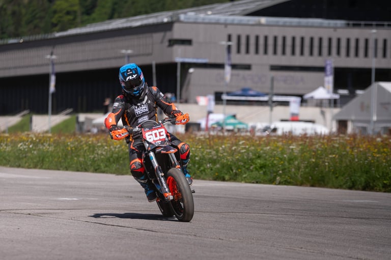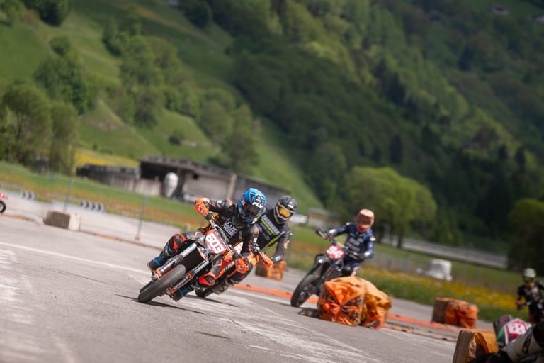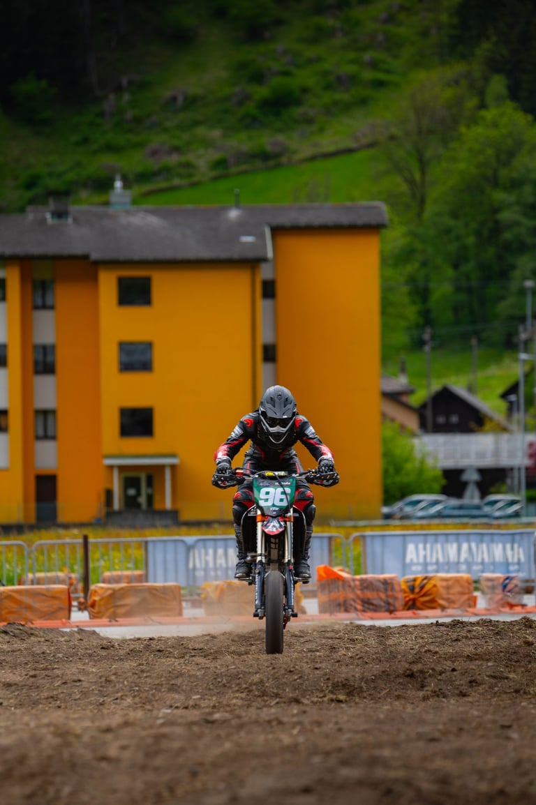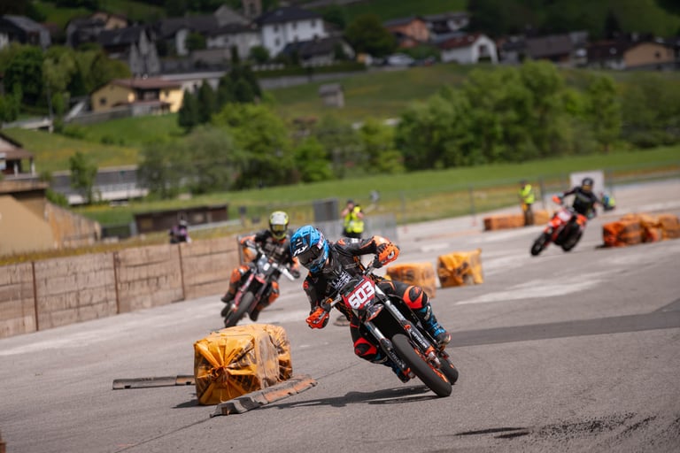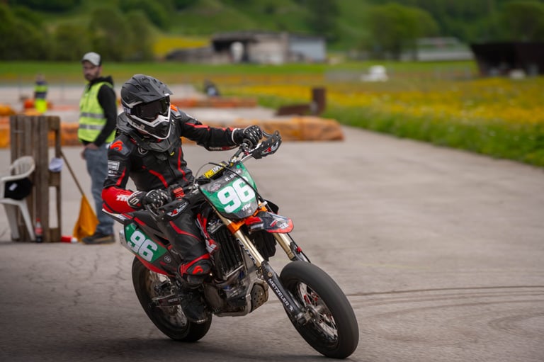 Round 2 of the Swiss Supermoto Championship took place on the fast and flowing Ambri Airport track in the heart of Ticino. After a 7.5-hour drive from Lausanne (thanks, traffic!), the team arrived just in time to set up the paddock and walk the track.